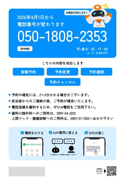 2026年4月1日よりAI電話による 受付を開始いたします。